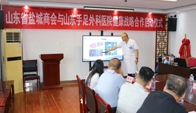 张培军院长对山东省盐城商会的信任与支持表示感谢。他指出,此次与盐城商会达成战略合作,是我院践行社会责任、拓展服务边界的一次有益尝试。医院将充分发挥其在手足外科等领域的专业优势,为商会会员量身定制包括健康管理、便捷就医、专家诊疗、健康讲座等在内的多层次健康服务包,积极构建“医企协同”的健康服务新模式,为优化营商环境贡献医疗力量。